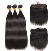 Straight Brazilian Hair Bundles with HD Lace 13x4 Lace Frontal PLB01